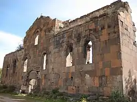 В настоящее время находится в полуразрушенном состоянии, сохранились лишь северная стена, восточная часть южной стены и восточная несущая арка купола. Представляет собой один из наиболее ранних и лучших образцов церковных строений типа купольной залы. Построен в конце VI — начале VII века (точная дата неизвестна). Имеет 15,7 метров в ширину и 30,4 метров в длину, размеры молитвенного зала соответственно — 10,3 м в ширину и 23,8 м в длину.