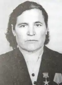 Работала в совхозе «Дёмский» до ухода на пенсию в 1970 году. Была телятницей, чабаном и птичницей совхоза.