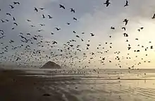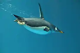 Заселяют птицы и наиболее удалённые от материков океанические острова. На вновь появившихся вулканических островах некоторые морские птицы поселяются ещё до появления там растений и других животных. Несколько семейств птиц приспособились к жизни на море, и некоторые виды морских птиц достигают берега только с целью размножения[111]. Птицы обычно не ныряют глубже 50—60 м, но у королевского пингвина зафиксировано погружение на 318 м[112], а у императорского — на 564 м[113].