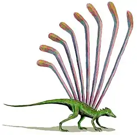 Эволюционное разделение птиц на множество разнообразных форм началось в меловом периоде[64]. Многие из этих форм, в том числе и предки современных веерохвостых птиц, вначале сохраняли признаки ящеров, впоследствии редуцированные, — крылья с когтями и зубы. Джехолорнис и другие древнейшие птицы обладали длинным хвостовым отделом позвоночника[64]. У представителей других, более развитых групп, например, клады пигостилевых, 4—6 задних хвостовых позвонков сливаются воедино, образовав пигостиль. Впрочем, это касается не всех пигостилевых (у большинства бескилевых, в том числе у некоторых летающих (тинамуобразных), хвостовые позвонки не срастаются)[65].