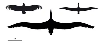 Сравнение размеров Pelagornis sandersi и современных андского кондора и странствующего альбатроса