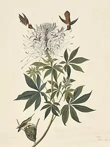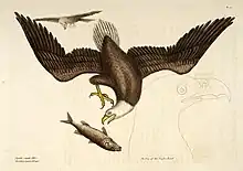 Первой работой, посвящённой непосредственно Северной Америке, стало произведение английского натуралиста Марка Кейтсби «Естественная история Каролины, Флориды и Багамских островов» (The Natural History of Carolina, Florida and the Bahama Islands), увидевшее свет в 1731—1743 годы. Книга была очень популярна в Европе, в частности, ею пользовался Линней. Кейтсби изображал птиц в естественной среде обитания во время их миграций, аккуратно прорисовывая детали и используя насыщенные краски, он сам занимался гравировкой. В основном птицы изображены в статическом положении на ветках или камнях. Лишь две иллюстрации передают движение; одна из них — охотящийся белоголовый орлан (Haliaeetus leucocephalus), выпустивший когти и готовый схватить рыбу. Чёрно-белое издание продавалось по подписке по цене в одну гинею, желающие могли за две гинеи приобрести раскрашенное издание на более качественной бумаге[21].