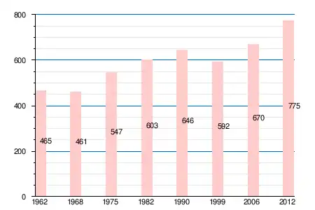 | 465 | 461 | 547 | 603 | 646 | 592 | 670 | 709 | 736 | 745 | 775 |