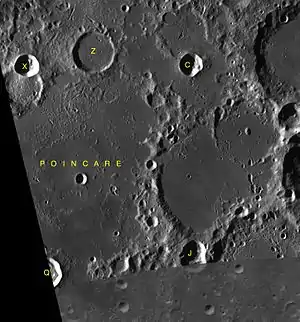 - Образование сателлитного кратера Пуанкаре Z относится к нектарскому периоду[1].