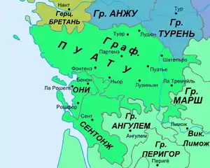 В древности — племенная территория галлов-пиктонов, затем — северная часть королевства Аквитании. С 778 года — владение графов Пуатье из рода Рамнульфидов, которые в середине XI века унаследовали трон всей Аквитании.