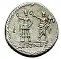 Этот выпуск монет был произведен Лентулом Марцеллином в качестве специального монетария — вместе с Луцием Сентием, сыном Гая, Марком Сервилием, Публием Сервилием и Гаем Фунданием.