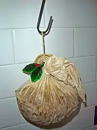 - Тряпичный пудинг — из фарша и лука, завёрнутых в тесто, готовится в марле