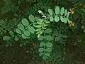 Сложные непарноперистые листья состоят из 9—13 листочков. Форма листочков от эллиптической до яйцевидной, их длина 1,5—3 см[2], на концах имеются выемки[3]. Адаксиальная (верхняя) сторона листа ярко-зелёная, голая, абаксиальная — матово-зелёная, слега пушистая[2]. Прилистники небольшие, ланцетные[3].