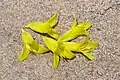 Цветонос до 1,5 м высотой, разветвлённый, ржавоопушённый. В соцветии 15—25 цветков, цветки до 5 см в диаметре. У цветка три зеленоватых чашелистика до 3,5 см длиной с закруглённым кончиком, три зеленоватых лепестка длиной до 7—8 см и шириной 4—5 см и ещё один спиралевидный лепесток. Шесть тычинок имеют ярко-оранжевые пыльники. Цветки в верхней части соцветия стерильные. Цветки выделяют много нектара, опыляются колибри и птицами. Растёт медленно, первый раз зацветает через 10—20 лет.