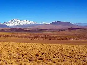 Анды на севере Чили образованы рядом вулканов, некоторые из которых достигают высоты 6000 м. Зимой они покрыты снегом, но климат региона засушливый, и в летние месяцы снег исчезает; только на некоторых высоких вершинах, таких как Охос-дель-Саладо и Льюльяйльяко, остаётся лед. Однако следы прошлого оледенения встречаются и на других вулканах. [3]
