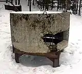 Слоистый колпак состоял из двух металлических колпаков с толщиной стенки 6—8 мм, между которыми забивалась прослойка 150 мм песка. Весил до 2000 кг.