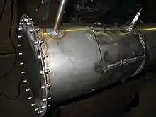 Конструктивно, ПуВРД представляет собой цилиндрическую камеру сгорания с длинным цилиндрическим соплом меньшего диаметра[4]. Передняя часть камеры соединена со входным диффузором, через который воздух поступает в камеру.
