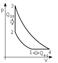 - Во-первых, наличие у ПуВРД воздушного клапана, очевидным назначением которого является предотвращение обратного движения рабочего тела вперёд по ходу движения аппарата (что свело бы на нет реактивную тягу). В ПВРД (как и в ТРД) этот клапан не нужен, поскольку обратному движению рабочего тела в тракте двигателя препятствует «барьер» давления на входе в камеру сгорания, созданный в ходе сжатия рабочего тела. В ПуВРД начальное сжатие слишком мало, а необходимое для совершения работы повышение давления в камере сгорания достигается благодаря нагреву рабочего тела (при сжигании горючего) в постоянном объёме, ограниченном стенками камеры, клапаном, и инерцией газового столба в длинном сопле двигателя. Поэтому ПуВРД с точки зрения термодинамики тепловых двигателей относится к иной категории, нежели ПВРД или ТРД — его работа описывается циклом Хамфри (Humphrey), в то время как работа ПВРД и ТРД описывается циклом Брайтона.