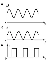 Различные пульсирующие токи отличаются друг от друга формой (если напряжение никогда не уменьшается до нуля), а также длительностью и частотой импульсов (если в некоторые периоды времени ток отсутствует) и зависит от того каким образом его получили из переменного, либо на инверторе из постоянного.