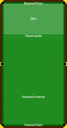 - В одну лузу. Каждый из соперников должен забивать шары в свою лузу (обычно одну из угловых). Луза выбирается перед началом игры.