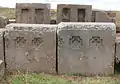 Среди блоков Пума-Пунку имеется значительное число взаимозаменяемых типовых элементов. Это, по всей видимости, было следствием их массового производства, что технологически опережало будущих местных жителей на многие столетия[13]. Откопанные в наше время и установленные рядами блоки Пума-Пунку очень напоминают склад готовой продукции современного завода железобетонных конструкций. Только на заводе изделия льют из бетона, а камни Пума-Пунку каким-то образом обрабатывали в твёрдом состоянии и даже выполняли в них глухие отверстия сложной формы.