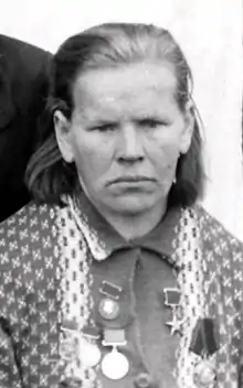 6 мая 1949 года Указом Президиума Верховного Совета СССР удостоена звания Героя Социалистического Труда «за получение высокой продуктивности животноводства в 1948 году при выполнении колхозом обязательных поставок сельскохозяйственных продуктов и плана развития животноводства по всем видам скота» с вручением Ордена Ленина и золотой медали «Серп и Молота»[3].