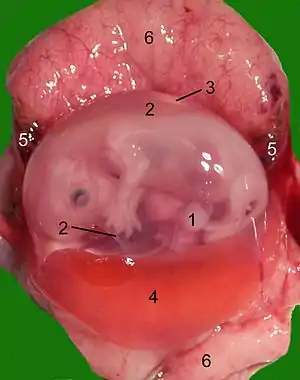 - Желточный проток — тяж, который соединяет эмбриональный кишечник и желточный мешок (содержит запасённые в яйцеклетке питательные вещества, в основном, лецитины). В позднем внутриутробном периоде запустевает и рассасывается. Если желточный проток рассасывается не полностью, образуется дивертикул Меккеля.