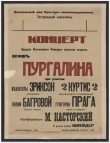 Эсфи́рь Яковлевна Пурга́лина (1 марта 1907, Бухара, Бухарский эмират, Российская империя — 1987) — советская актриса. Певческий голос — меццо-сопрано. Окончила Ленинградскую государственную консерваторию имени Н. А. Римского-Корсакова. В 1939 году стала лауреатом 1-го Всесоюзного конкурса артистов эстрады.