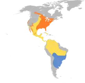 Гнездится от юга Канады до Мексики, зимует в бассейне Амазонки. Обитает как в городских и сельскохозяйственных районах, так и в светлых и дождливых лесах.