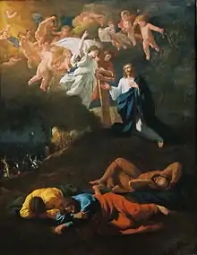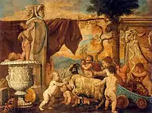 Никола́ Пуссе́н (Никколо́ Пусси́но) (фр. Nicolas Poussin, итал. Niccolò Pussino; 1594, Лез-Андели, Нормандия — 19 ноября 1665, Рим) — французский художник, один из основоположников живописи классицизма. Значительную часть активной творческой жизни провёл в Риме, в котором находился с 1624 года и пользовался покровительством кардинала Франческо Барберини. Обратив на себя внимание короля Людовика XIII и кардинала Ришельё, был удостоен титула первого живописца короля. В 1640 году приехал в Париж, но не смог приспособиться к положению при королевском дворе и пережил ряд конфликтов с ведущими французскими художниками. В 1642 году Пуссен вернулся в Италию, где жил до самой кончины, исполняя заказы французского королевского двора и небольшой группы просвещённых коллекционеров. Скончался и похоронен в Риме.