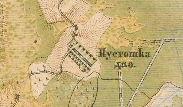 ПУСТОШКА — деревня удельная при колодце, число дворов — 13, число жителей: 45 м. п., 31 ж. п. (1862 год)[8]