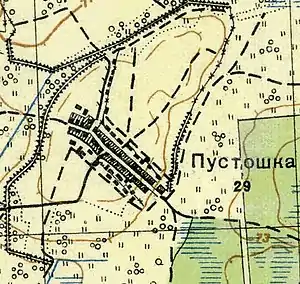 Согласно карте 1879 года деревня Пустошка состояла из 10 крестьянских дворов[9].