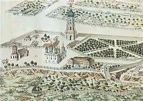 ![]() Пустынно-Никольский монастырь на рисунке 1783 года. | |