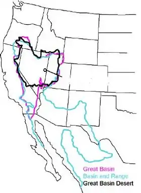 Пустыня Большого Бассейна (англ. Great Basin Desert) — одна из наиболее крупных пустынь США, занимающая площадь 190 000 квадратных миль. Граничит с хребтом Сьерра-Невада на западе, Скалистыми горами на востоке, Колумбийским плато на севере и пустынями Мохаве и Сонора на юге. В отличие от Мохаве и Сонора, пустыня Большого Бассейна «имеет недостаточно креозотовых кустарников», как в 1986 году охарактеризовал её J. Robert Macey в своей работе, посвящённой различиям между кустарниковой пустыней Большого Бассейна и «пустынями креозотового кустарника»[1][2]. Количество осадков в области пустыни меняется в пределах от 7 до 12 дюймов в год.