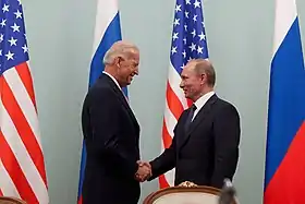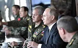 Влади́мир Влади́мирович Пу́тин (род. 7 октября 1952, Ленинград, СССР) — российский государственный, политический и военный деятель. Действующий Президент Российской Федерации, председатель Государственного Совета Российской Федерации и верховный главнокомандующий Вооружёнными силами Российской Федерации с 7 мая 2012 года. Ранее занимал должность президента с 7 мая 2000 года по 7 мая 2008 года, также в 1999—2000 и 2008—2012 годах занимал должность председателя правительства Российской Федерации.