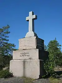 Однако по законам Великого княжества Финляндского монастыри не имели права покупать землю на его территории. Многочисленные тяжбы длились до 1878 года, когда император Александр II разрешил спор, выкупив остров на своё имя, и передал его во владение монастырю. Тогда же на одной из высочайших точек острова был поставлен огромный поклонный крест из добытого на острове гранита с памятной надписью, посвящённой дару императора. По поклонному кресту гора стала назваться монахами «Крестовая», а сам остров — «островом Святого Сергия» — в честь Сергия Валаамского, одного из двух легендарных основателей Валаамской обители[4].