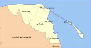 - городские гмины: Хель, Ястарня, Пуцк, Владыславово