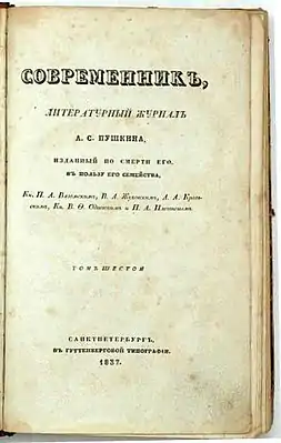 - Рыскин Е. И. Журнал А. С. Пушкина «Современник» : 1836—1837 : Указ. содерж.. — М. : Книга, 1967. — 93 с.