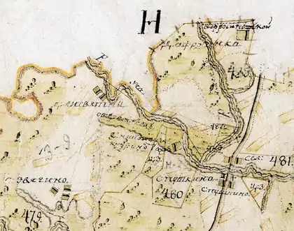 К середине века здесь формируется бобыльская слободка в 29 дворов. В 1571 году село пришло в запустение в связи с набегом крымского хана Девлета. Однако уже в 1585 году здесь был митрополичий двор и 17 крестьянских дворов, а также монастырская запашка десятин в 65. Некоторый доход давали мельница и перевоз на р. Уче[24]. Спустя еще 10 лет первый московский патриарх Иов уже начинает раздавать поместья своим сыновьям боярским[26]. Так, Шестову Макарову достается приказчикова пашня и бывшая пустошь Ласткина с лугами и лесом в дворцовом селе Пушкино[27]. Спустя два года поместье в близлежащей деревне Сахорникове (Сахарникове) получает кравчий патриарха, Федор Семенович Сугорский, потомок князей Белозерского княжества[28].