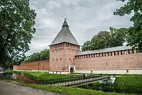 Здесь же в сквере[1] расположена большая четырёхугольная Копытенская башня, сохранившаяся в первоначальном виде. Башня имеет боковые ворота, через которые в древности ранним утром на пастбище выгоняли домашний скот, стучащий своими копытами по мостовой. Так как ворота не предназначались для торжественных въездов и выездов, то во времена Екатерины II они были заделаны. Украшением башни служат круглые сквозные и имитируемые бойницы. На башне установлена смотровая вышка. В 1902 году в башне размещался губернский архив.