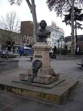 В 1892 году, к 55-летней годовщине со дня смерти поэта, в саду, недалеко от того места, где в Тифлисе в 1829 году останавливался Пушкин («пушкинский» дом не сохранился, мемориальная доска на фасаде д. 5)[2][3], был открыт его памятник[4]. Инициатором создания памятника выступил тифлисский полицеймейстер Россинский.