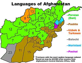 - Languages: Afghanistan (недоступная ссылка). Central Intelligence Agency. The World Factbook. Дата обращения: 18 сентября 2010. Архивировано 15 октября 2013 года.