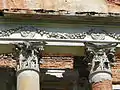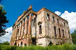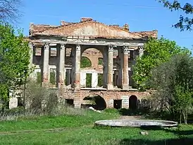 В состав усадьбы входят руинированный господский дом, флигели (два из четырёх уничтожены в постсоветское время), парадный двор с фонтаном, парк с липовыми аллеями. Особенности постройки — греческий портик под низким фронтоном, полукруглые трехчастные окна, итальянские арки в цокольной части.