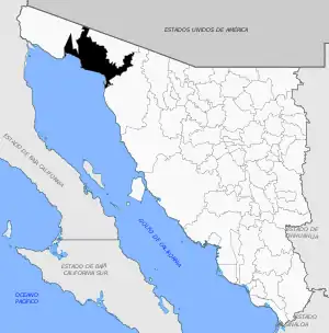 Он граничит с другими муниципалитетами Соноры: на севере с Хенераль-Плутарко-Элиас-Кальесом, на востоке с Каборкой, на западе с Сан-Луис-Рио-Колорадо, также на севере проходит государственная граница с США, а на юге берега муниципалитета омываются водами Калифорнийского залива[5].