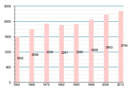 Население коммуны в 2011 году составляло 2831 человек[6], в 2012 году — 2829 человек[7], а в 2013-м — 2794 человека[5].