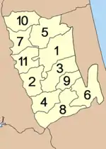Провинция делится на 11 районов (ампхе), которые в свою очередь, состоят из 65 подрайона (тамбон) и 626 поселений (мубан):