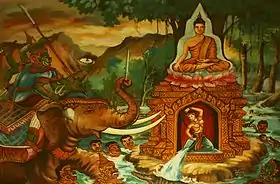 Изображения Пхра Мэ Тхорани распространены в буддийских храмах Камбоджи, Мьянмы, Таиланда и Лаоса. В буддийскому мифе Пхра Мэ Тхорани персонофицируется как молодая девушка выжимающая холодную воду из своих волос, для того чтобы утопить Мару, демона, отправленного искусить Будду, медитировавшего под деревом Бодхи. Если рассмотреть миф о том, как Будда призывал землю в свидетели, то Пхра Мэ Тхорани и будет персонофикацией земли, которая ему помогла. На фресках в храмах Пхра Мэ Тхорани часто изображена с Буддой, призывающим землю в свидетели. Воды, которые выходят из её волос и смывают армии Мары, символизируют воды совершенной щедрости Бодхисаттвы.