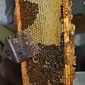 Распечатывание сотов со зрелым мёдом