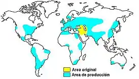 Исследователи выделяют три местности в северном Леванте, где наиболее вероятно произошло появление культурной пшеницы: близ населённых пунктов Иерихон, Ирак-эд-Дубб и Тель-Асвад[20], а несколько позже и в юго-восточной Турции[21].