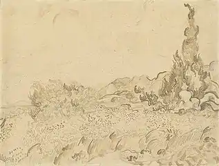 | Пшеничное поле с кипарисом (F615). сентябрь 1889 | |