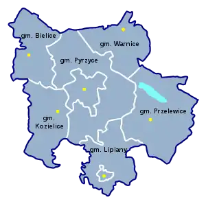 - сельские гмины: Гмина Белице, Гмина Козелице, Гмина Пшелевице, Гмина Варнице