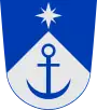 Герб: на зубчато-разделённом сине-серебряном щите в верхней синей части серебряная восьмиконечная звезда, в нижней серебряной части синий якорь.