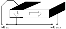 При подаче переменного напряжения на электроды первичной цепи, благодаря обратному пьезоэлектрическому эффекту возникают механические напряжения. Последние приводят к деформации пьезокристалла, которая, благодаря прямому пьезоэлектрическому эффекту, вызывает изменение напряжения во вторичной цепи.