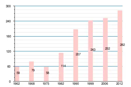 | 1962 | 1968 | 1975 | 1982 | 1990 | 1999 | 2006 | 2008 | 2011 | 2012 |