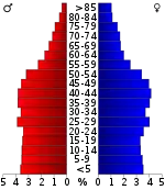 Население округа по возрастному диапазону по данным переписи 2000 года распределилось следующим образом: 25,20 % — жители младше 18 лет, 9,60 % — между 18 и 24 годами, 31,10 % — от 25 до 44 лет, 22,60 % — от 45 до 64 лет и 11,50 % — в возрасте 65 лет и старше. Средний возраст жителей округа составил 35 лет. На каждые 100 женщин в округе приходилось 92,00 мужчин, при этом на каждых сто женщин 18 лет и старше приходилось 88,20 мужчин также старше 18 лет.